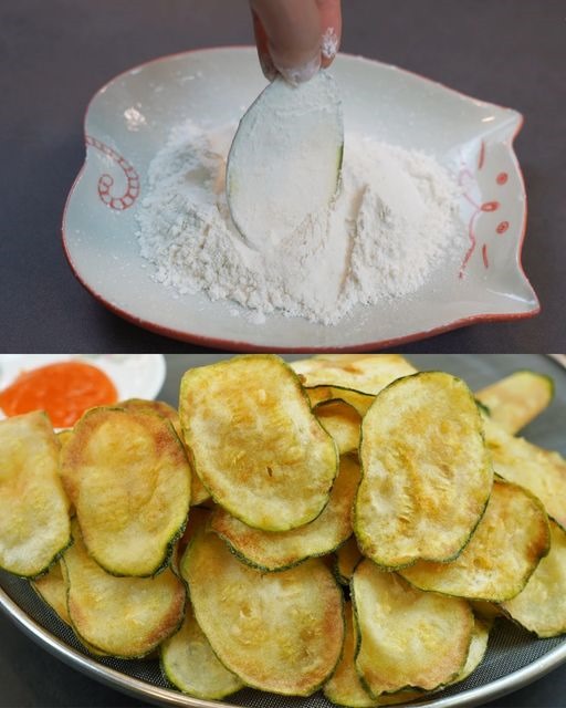 Nehmen Sie die Zucchinichips aus dem Öl und legen Sie sie auf einen mit Papiertüchern ausgelegten Teller, um überschüssiges Öl abtropfen zu lassen. Sofort heiß und knusprig serviere