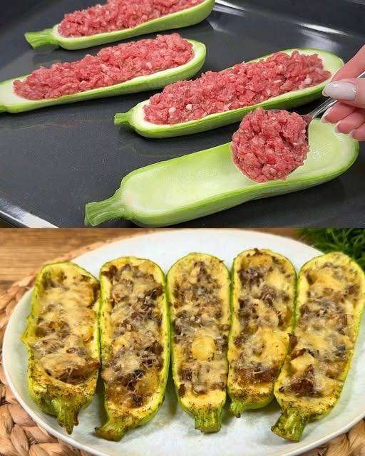 Dieses Rezept für gefüllte Zucchini ist ein leckeres und sättigendes Gericht, perfekt zum Abendessen oder als Beilage. Das Gericht besteht aus zarten Zucchinihälften, die mit einer köstlichen Kombination aus Hackfleisch, Gemüse, Pilzen, Ananas und Käse gefüllt sind, wodurch eine köstliche Kombination aus herzhaften und süßen Aromen entsteht. Mit Parmesan belegt und perfekt zubereitet, wird das Gericht mit Sicherheit beeindrucken!