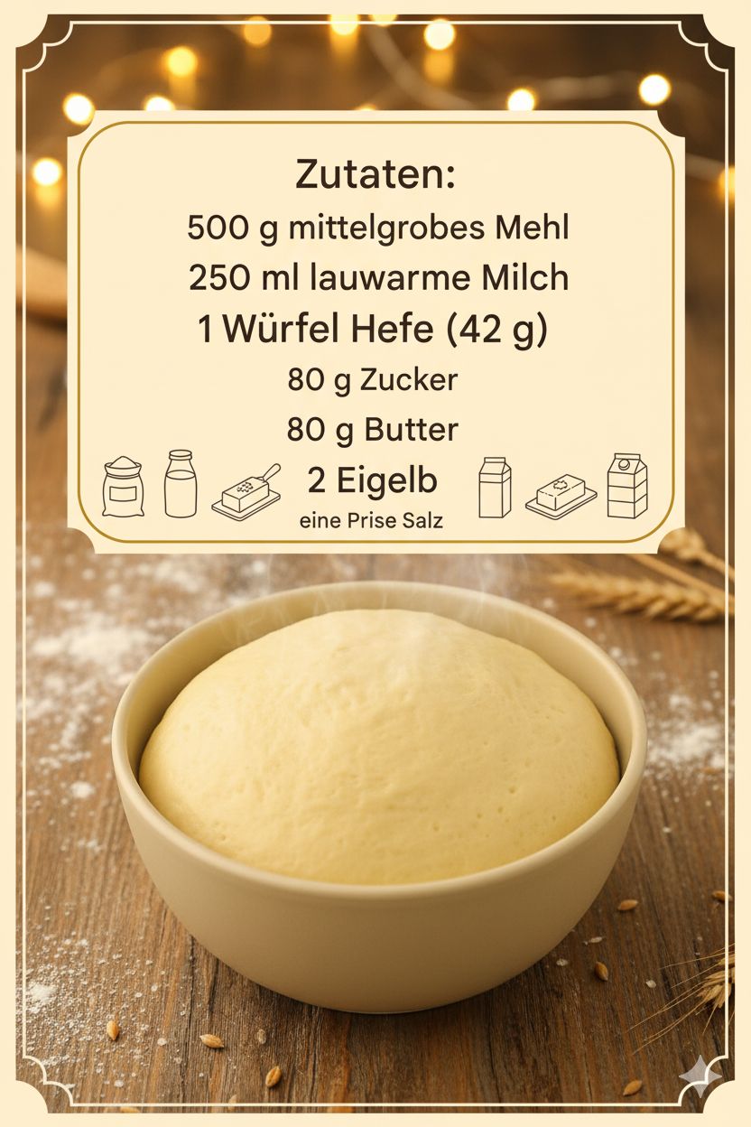 1 Würfel frische Hefe (42 g) oder 1 Päckchen Trockenhefe