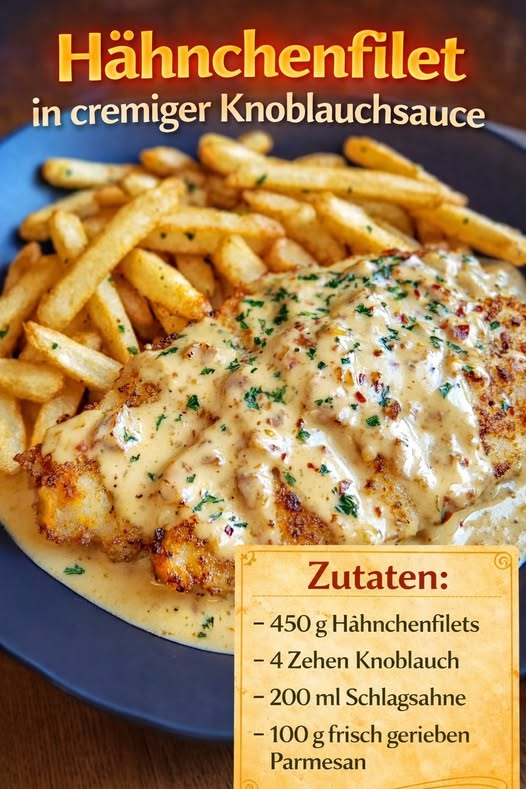Voll lecker, Hähnchenfilet in cremiger Knoblauchsauce